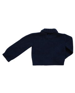 Double-Breasted Rib-Knit Cardigan in Navy Blue
