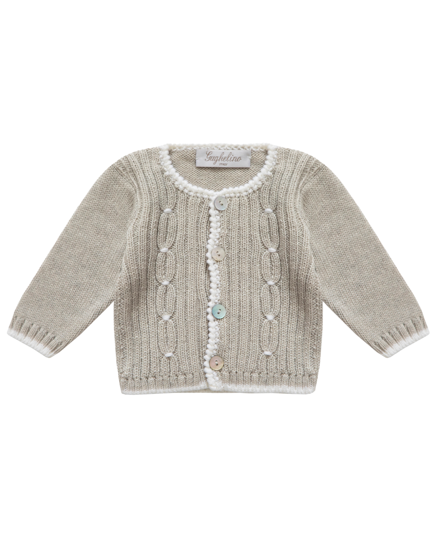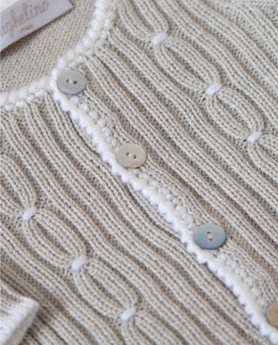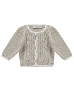 Hand-Embroidered Baby Cardigan, Beige Cable-Knit