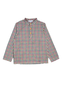 Emile Brushed Cotton Boy’s Shirt, Red Wine & Pine Green Check