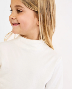 The white turtleneck, a winter essential! Crafted from Oso & Me's signature super soft float cotton and featuring subtle off-white piping at the neck we love this for breathable layering under dresses and sweaters all winter long.