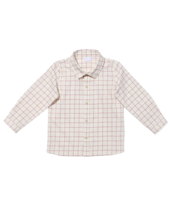 The Jeffie Shirt in a limited edition pomegranate plaid. Best described by Oso & Me 'A casual button down shirt for boys or girls in the softest fabric you've ever touched. Our Jefferson shirt features shoulder room so that they can play with freedom, a flat shirt tail for an untucked and casual — or tucked in and put-together look, and our favourite detail of all: the sweetest rounded Peter Pan collar that’s perfectly nostalgic.' Pair with the Jefferson Baby Shirt for matching brothers.