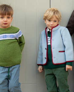 Our signature merino wool Austrian Jackets are designed by us in collaboration with a family-run atelier in Spain. Featuring a smart nehru collar and closing at the front with stamped metal buttons, our jackets are soft, warm and comfortable, with good stretch. Each season, we present a range of colours with elegant contrast piping. Designed to be styled with our entire seasonal curation, our jackets are made to last.