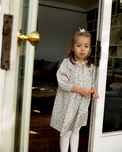 Baboushkini's smocked dresses are made by hand for us in Spain. Please note that all dresses have been lengthened this season, with an extra 5cm in length from previous seasons. We do however suggest taking a size up from the age your child is closest to for a comfortable fit and room to grow.