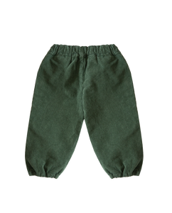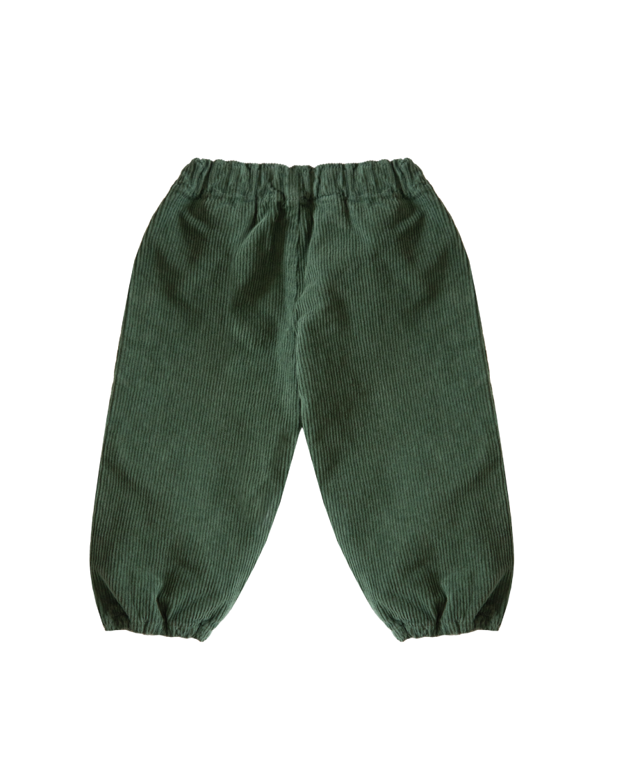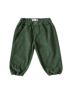 Unisex baby pantaloons crafted from a robust, comfortable corduroy in olive green corduroy, featuring an elastic waist band for a comfortable fit and a decorative chunky button. Designed to gather below the knee and featuring a roomy silhouette and a comfortable elastic waistband for maximum comfort, the playful style pairs beautifully with simple baby vests and crisp cotton. Style with a cardigan for cooler days, and layer over ribbed tights in cooler months.
