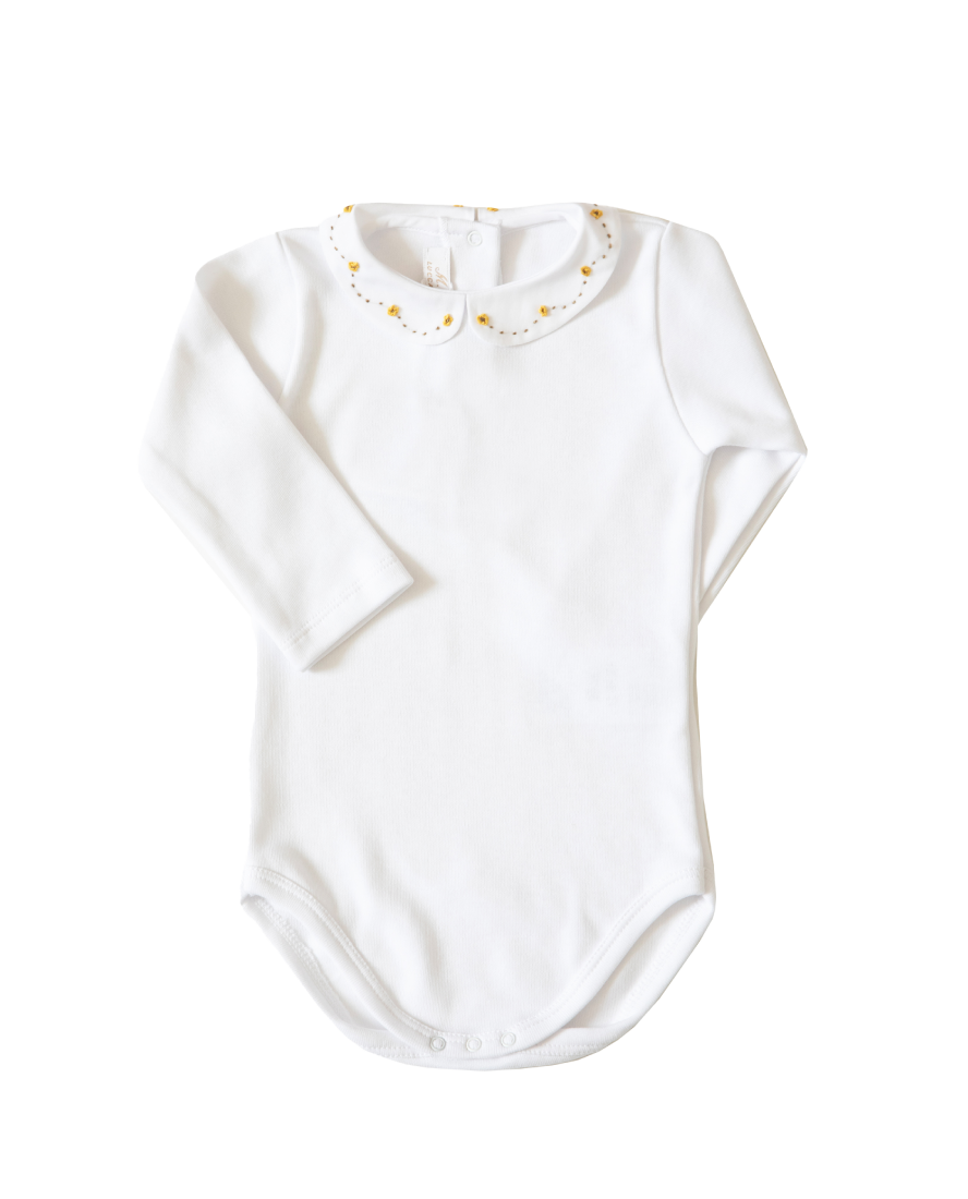 Baby Body With Embroidered Collar, Yellow Flowers