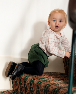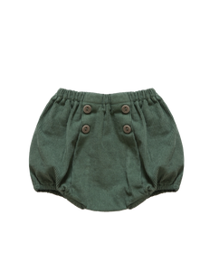 Classic baby bloomers trousers crafted from a comfortable, robust corduroy. Featuring an elastic waist band for a comfortable fit and a decorative double-breasted button. In rich navy blue and olive green for this season, these bloomers bring timeless charm and comfort to your baby's cold-weather wardrobe.