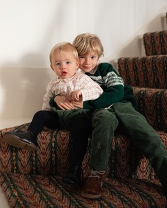 The Jefferson baby shirt in limited edition pomegranate plaid. Best described by Oso & Me: 'A casual button-down for baby boys or girls in the softest fabric you've ever felt. The Jefferson Baby Shirt is designed with extra shoulder room for easy movement and a flat shirttail that looks just as good untucked and relaxed as it does tucked in and polished.' We love the charming rounded collar and back yoke pleat.