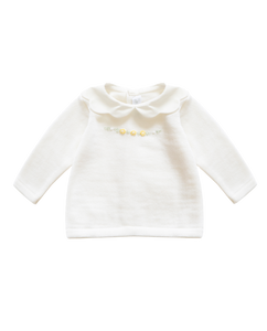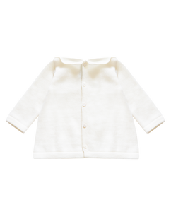 Our classic newborn collection with Pepecè is carefully designed for Baboushkini, with colours and motifs chosen especially for going home outfits and first special occasions. Crafted and woven in Italy from soft wool, our charming newborn pieces are delicately embroidered with little ribbons, roses and bunnies in unique shades of cream, yellow, pink and blue.