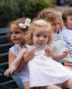 Baboushkini's eyelet lace trimmed dresses are made by hand in Spain. These styles run true to size, we suggest taking the size the child is closest to in age, or sizing up by one size for room to grow.