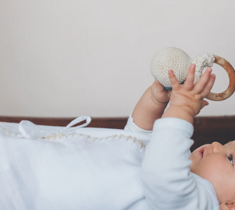 YAARN's cotton muslin sleep sack is soft and lightweight, with a 1.5 tog warmth rating. Snuggly and gentle on newborn skin, this sleeping bag fastens with two ribbons at the side. It is finished with YAARN's signature crochet border in rich ivory giving it an extra touch of artisanal luxury.