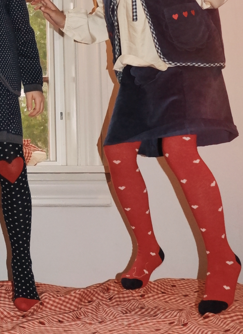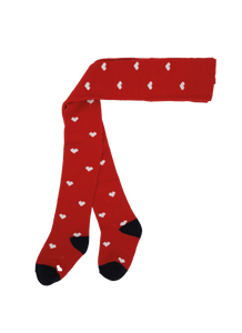 Our Poppy Red Heart tights are a playful statement piece for the season. Designed by Danish brand Flöss, these soft-knit tights are bold red sprinkled with sweet white hearts. With a comfortable stretch they're designed to add a cheerful touch to autumny-wintery outfits.