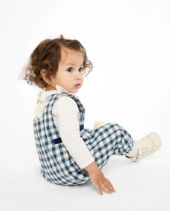 The limited edition Scout overalls are crafted from breathable, durable twill in a smart blue gingham. With elastic at the sides for comfort and size-flexibility as babies grow outward (!), the Scout overalls feature buttoned straps and plenty of Oso & Me's practical, thoughtful details. Designed with layering in mind, an easy-to-wear staple that will last as children grow.
