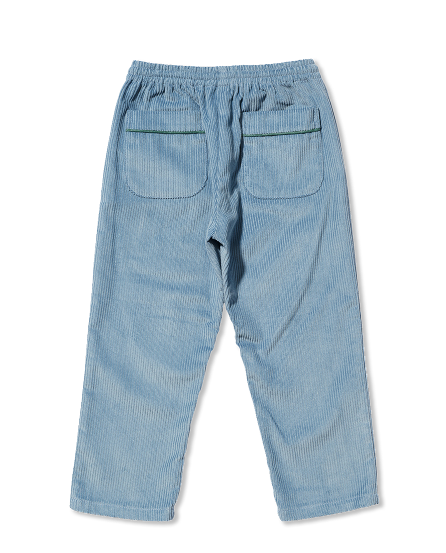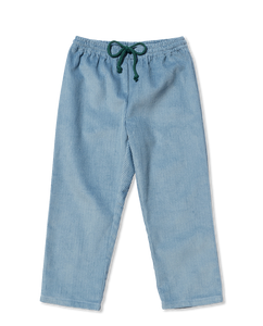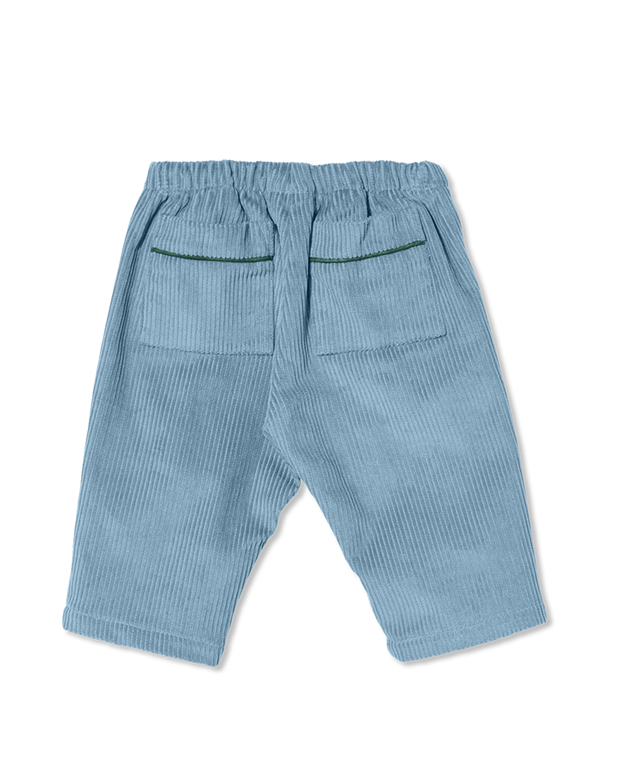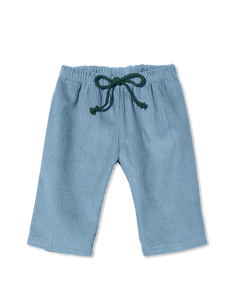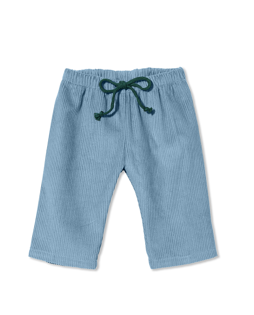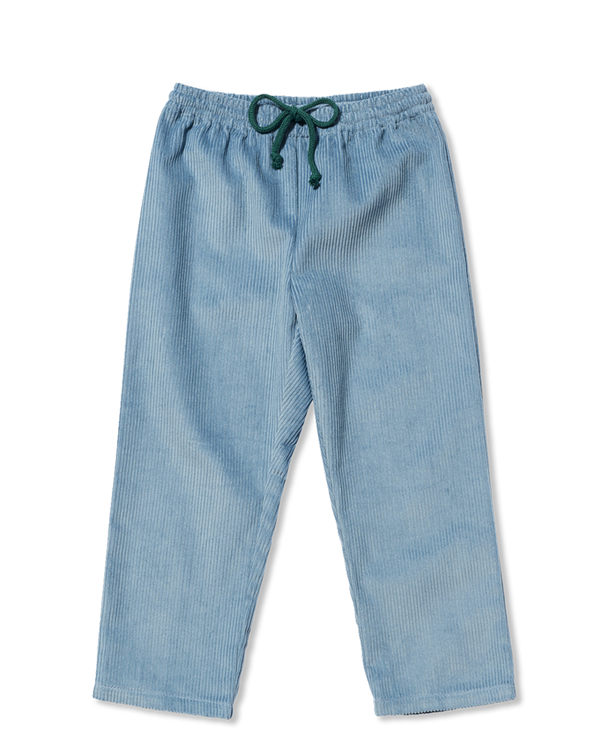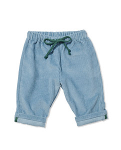 The Bowie Trousers are one of our seasonal sell-out styles. Crafted from soft, durable corduroy the rain blue colorway features an elastic drawstring waistband for a comfortable and flexible fit and are lined with a secret contrast binding in smart forest green for a stylish cuff-roll.