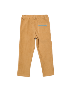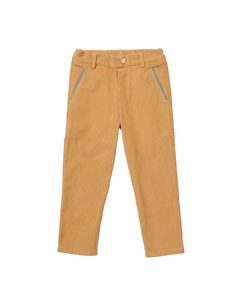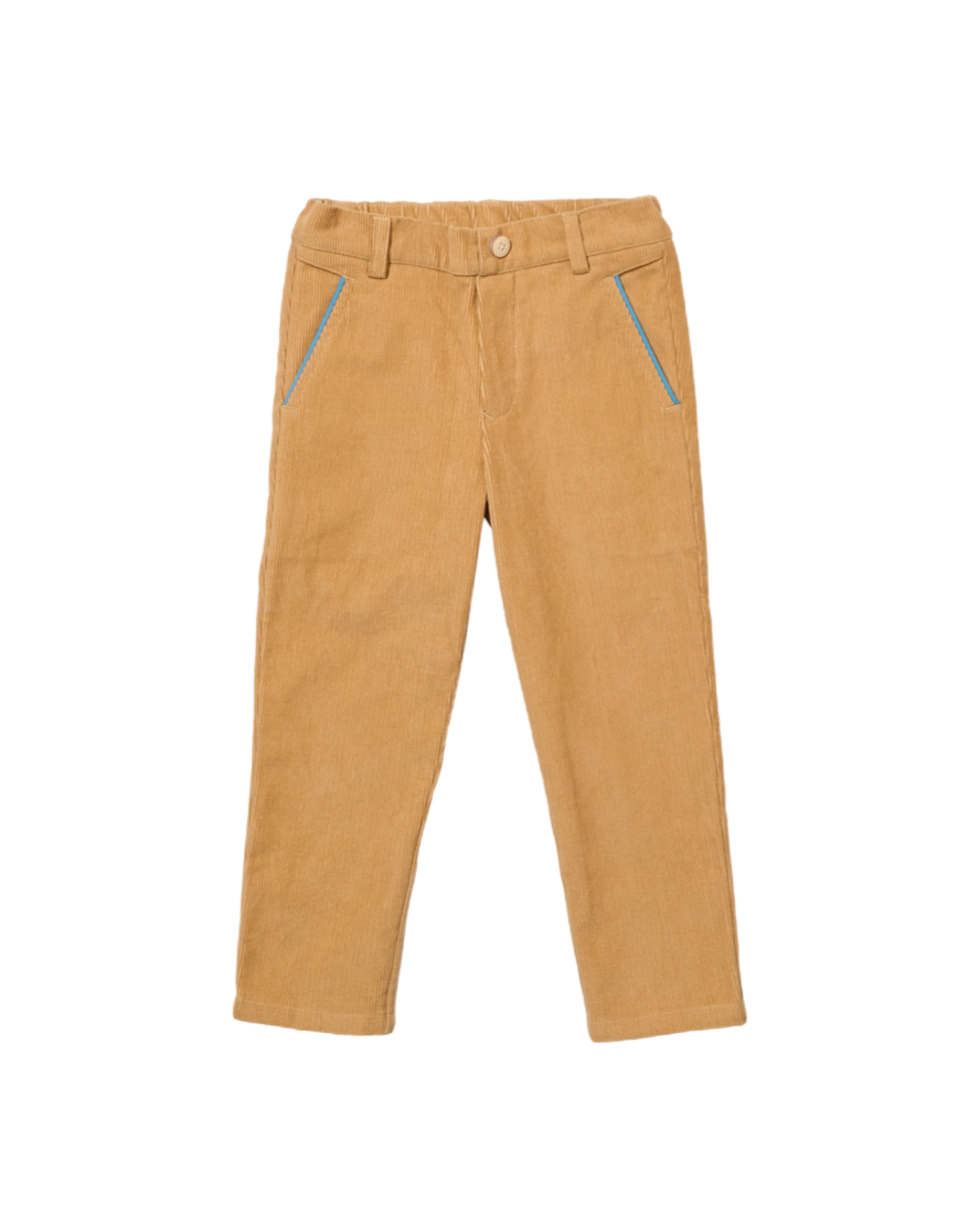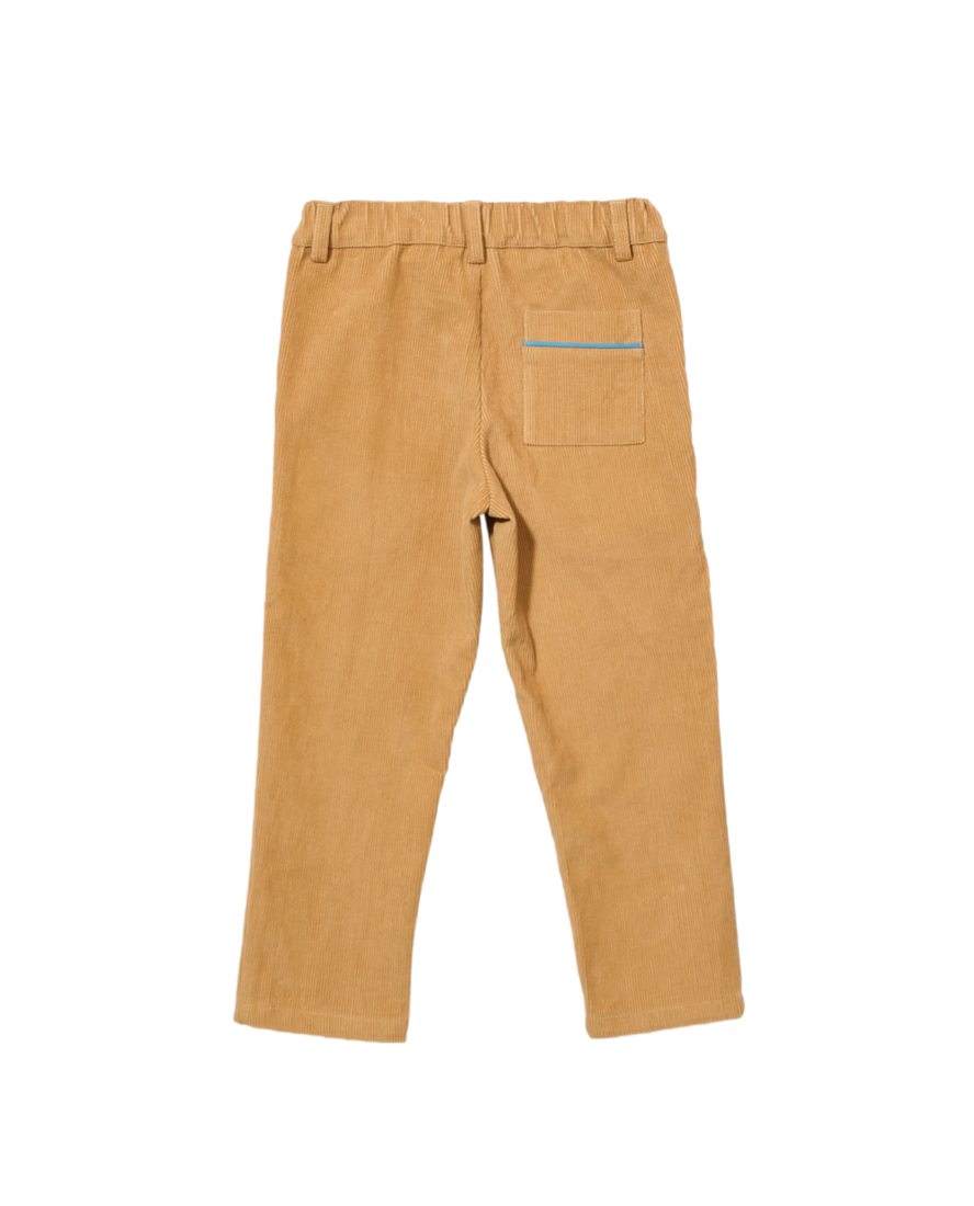 We fell for Oso & Me's new slim-fit corduroy trousers immediately! Crafted from a durable but light weight cotton corduroy, they feature a comfortable a size-flexible elastic waistband garnished with a little faux button. The contrast pocket piping is chic chic chic, and of course the cuffs can be turned yup to reveal the stylist contrast binding on the inside as well.