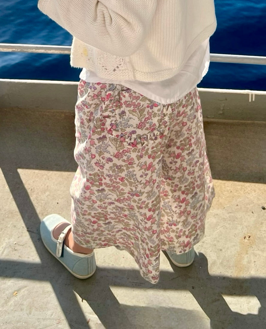 Breezy culotte style liberty fabric girl's trousers, designed to fall at the ankle with a bit of a swing. These have an elastic waistband for added comfort, and a ruffle pocket at the back. Designed and made by hand in collaboration with Sew Heritage in limited edition as part of our summer exclusives.