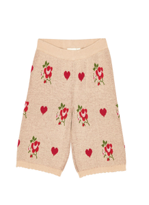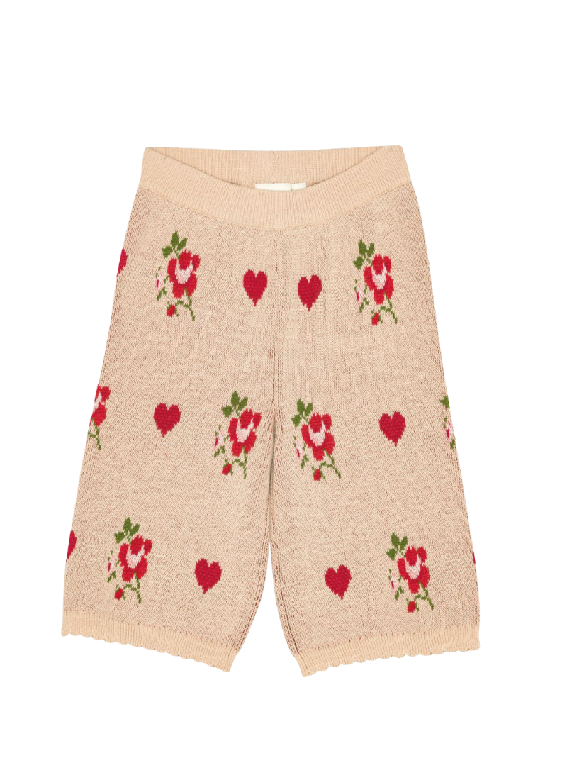 Amelia Girls Knit Trousers, Hearts & Roses Embroidery