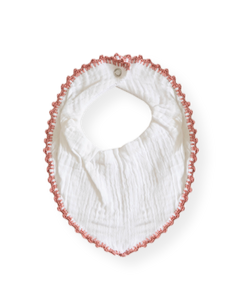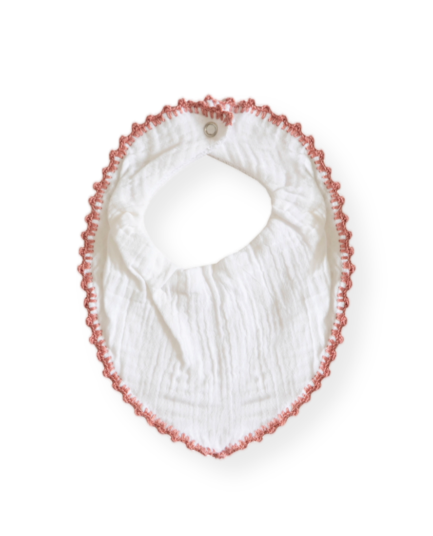 Muslin Bib with Crochet Trim, Blush